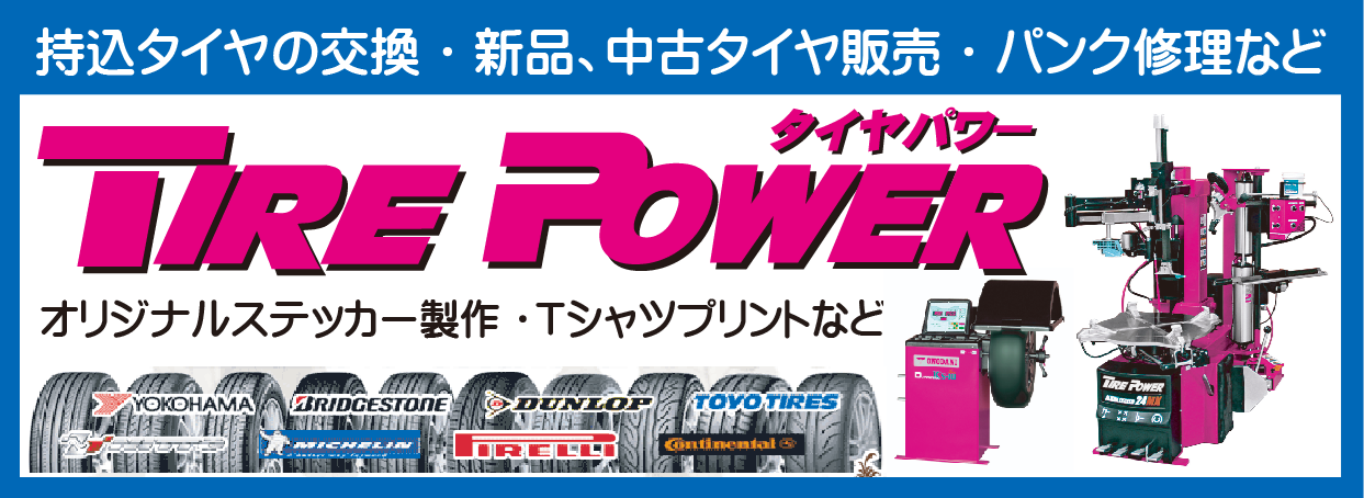 タイヤパワーではタイヤ販売、交換とオリジナルグッズ製作を行っております。