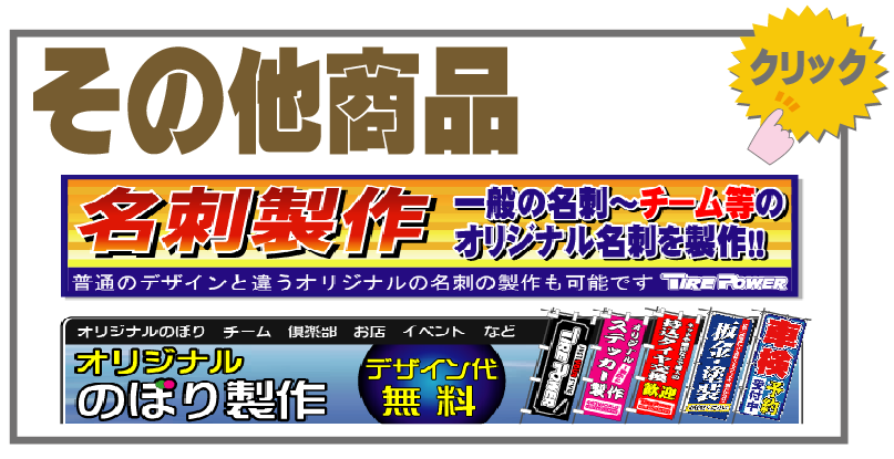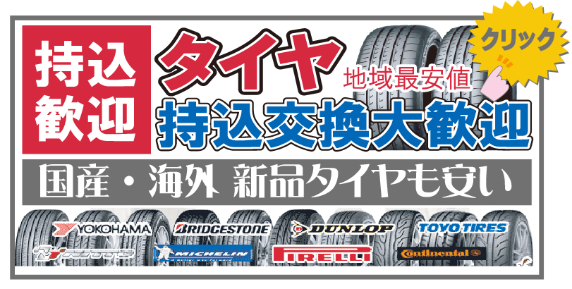 お客様、お子様にいっぱいプレゼントなどを用意してますのでご覧ください下さい 持込みタイヤの交換、新品・中古タイヤ販売、オリジナルグッズ製作などを行ってます。 営業時間 10:00~20:00 18時以降の予約がない日は18時に閉店しますので、18時以降ご来店予定の方は事前に連絡下さい。 TEL/FAX 0297-39-3670 定休日 ●毎週火曜日 ●毎月1回不定休あり ツイート